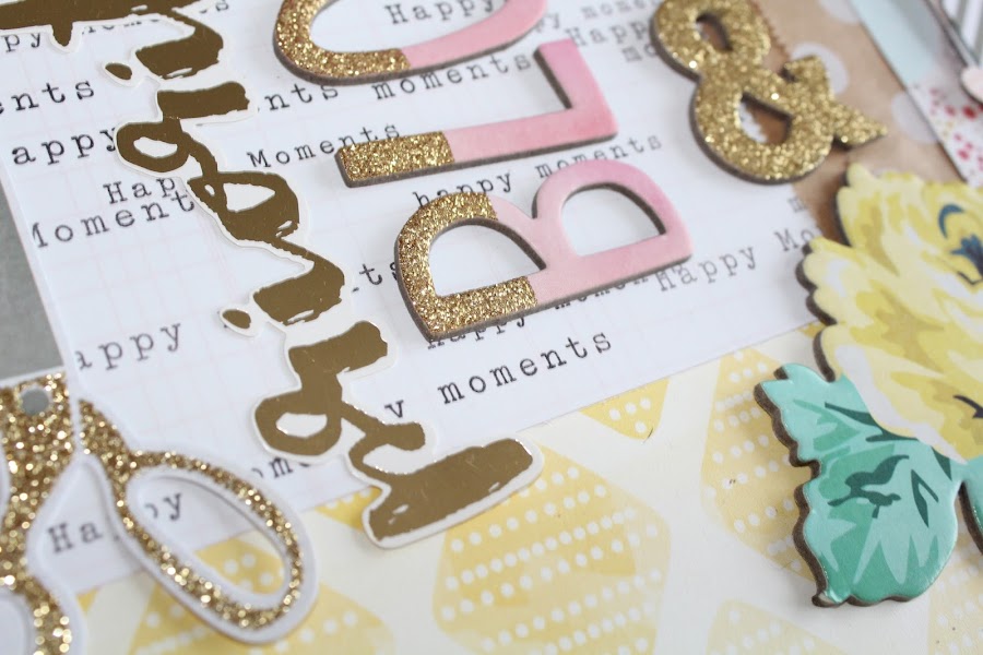 Para las diferentes palabras he usado diferentes Die Cuts y stickers. he escogido las tonalidades pastel para seguir con la gama de la base.