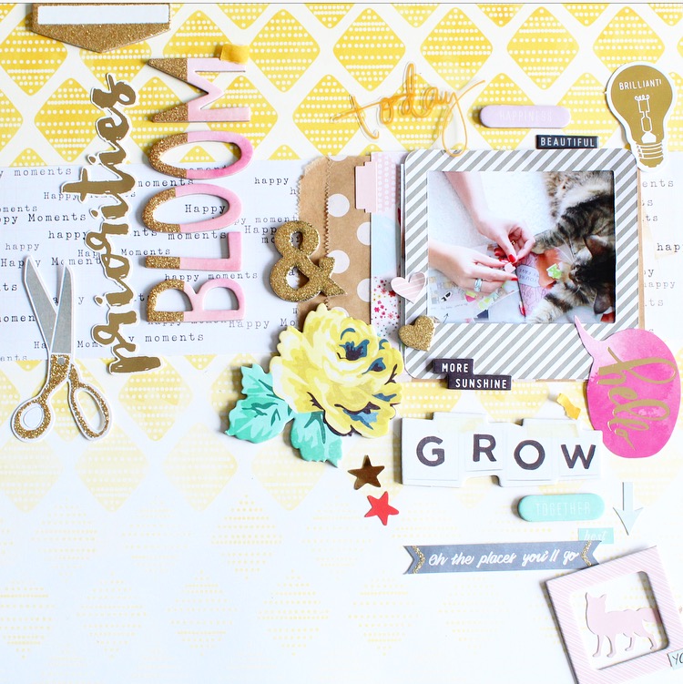 Para decorar he utilizado los stickers de la colección Bloom de Maggie Holmes, algunos doraditos para darle ese toque shabby Chic que tiene la foto.