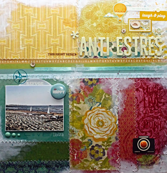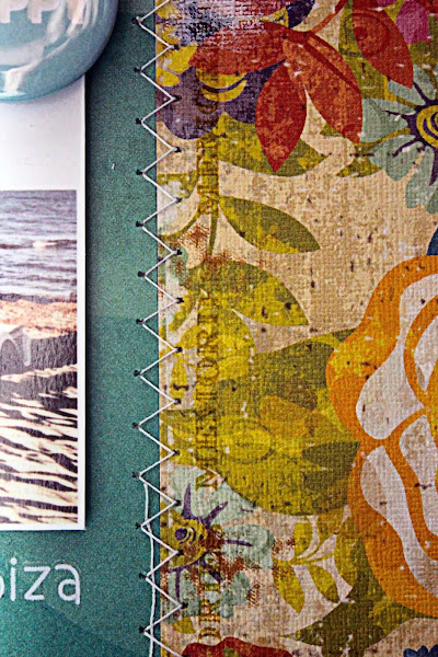 Se me ocurrió coger esos trocitos de papeles pequeños, que siempre guardo, esos stikers que me sobraron de algún taller, mi máquina de coser, gesso alguna cosita más...y el resultado es muuuuy alegre!