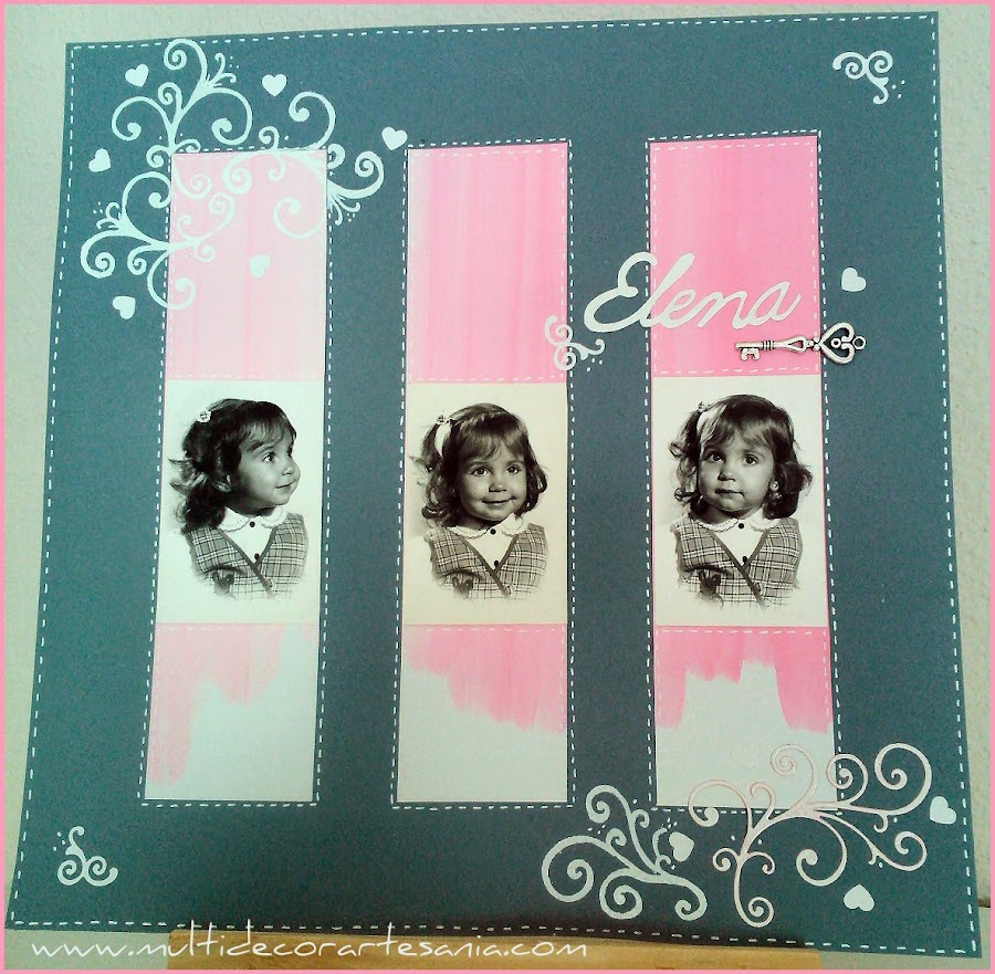 Así que dispuesta a participar he creado este LO con tres fotografías en blanco y negro de mi hija Elena.