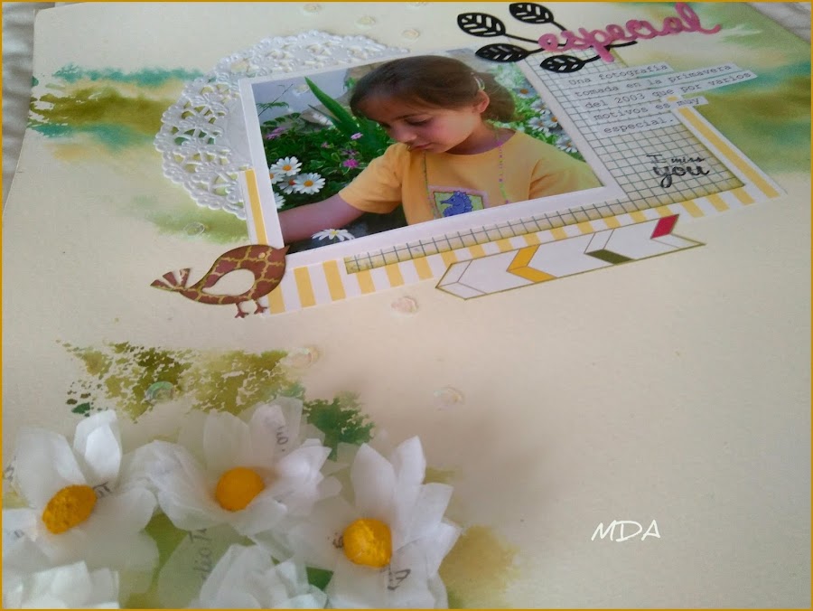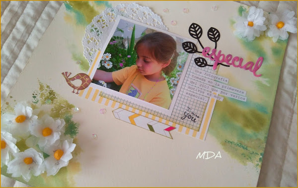 En esta ocasión un layout con flores para el reto de AZZA, siguiendo el sketch que propone In the Scrap y creando un fondo usando acuarelas tal y como requiere el reto de Locas por el Scrap.