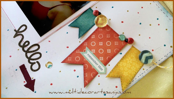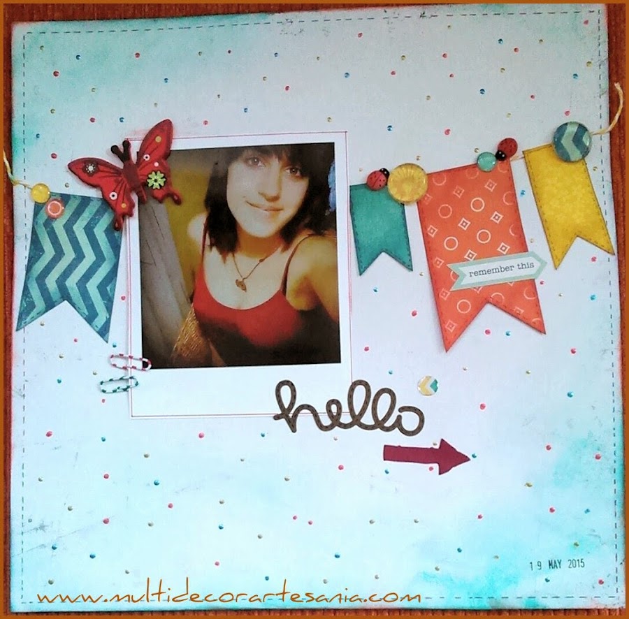 Este en concreto que os traigo hoy es mi propuesta para el reto de mayo en Gargamell Scrap cuya propuesta consistía en seguir us SKETCH y me parecio tan divertido que no pude resistirme, en cuanto vi los banderines me dije, "ahí voy".