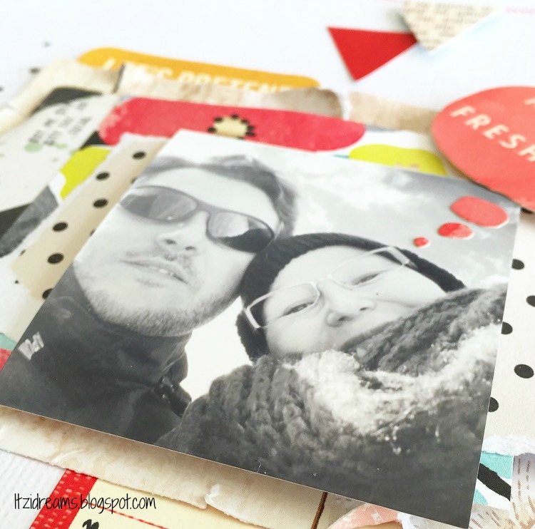 Hoy quiero enseñaros mi interpretación al primer reto de More Than Words, un nuevo rincón donde aprender, compartir y experimentar, sobre todo con técnicas Mixed Media. El tema para este primer reto es un proyecto con un Selfie, puede ser tanto solo como con amigos, pareja, etc… a modo de presentación. Escogí una foto de un Selfie con mi alma gemela, mi marido y compañero de este viaje, llamado vida.