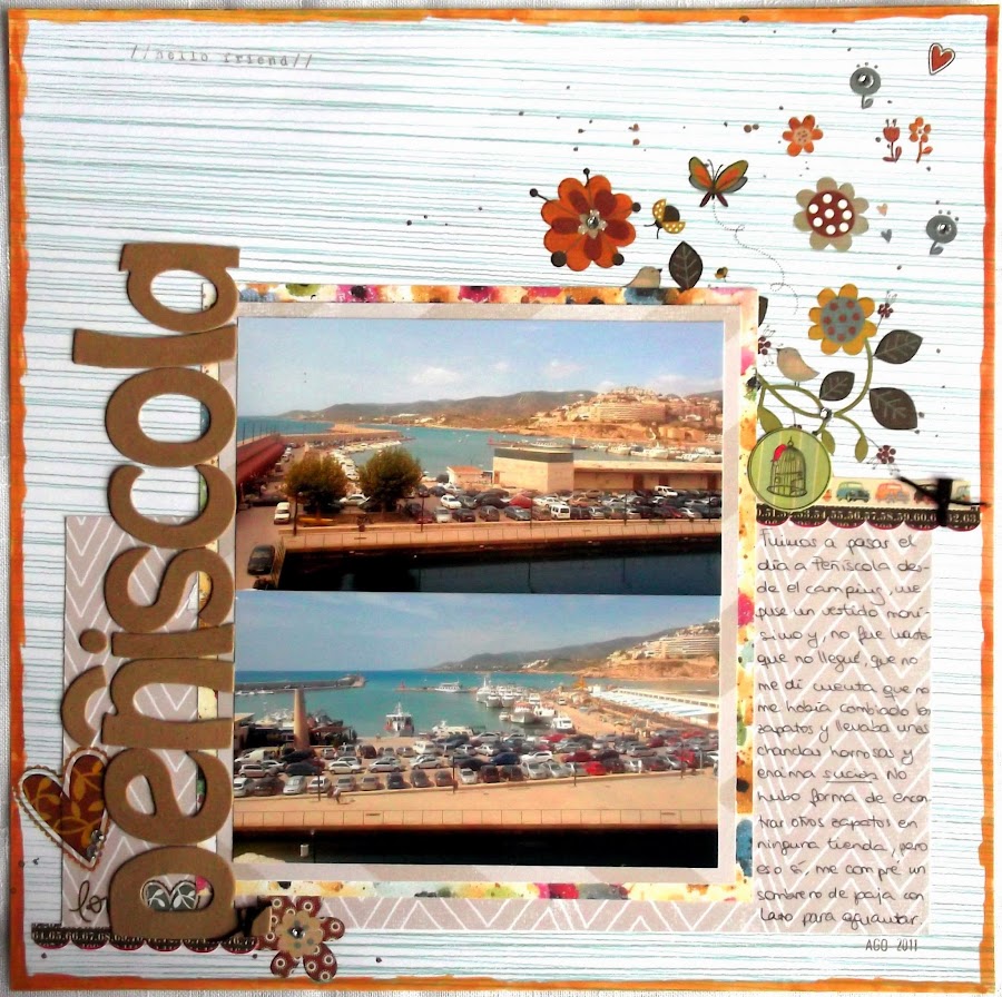 Para esta página el reto era usar rub ons, que los tengo abandonaditos en un cajón cogiendo polvo, y estrenar una caja de acuarelas que compré apresuradamente para hacer un álbum que aún ni he empezado.