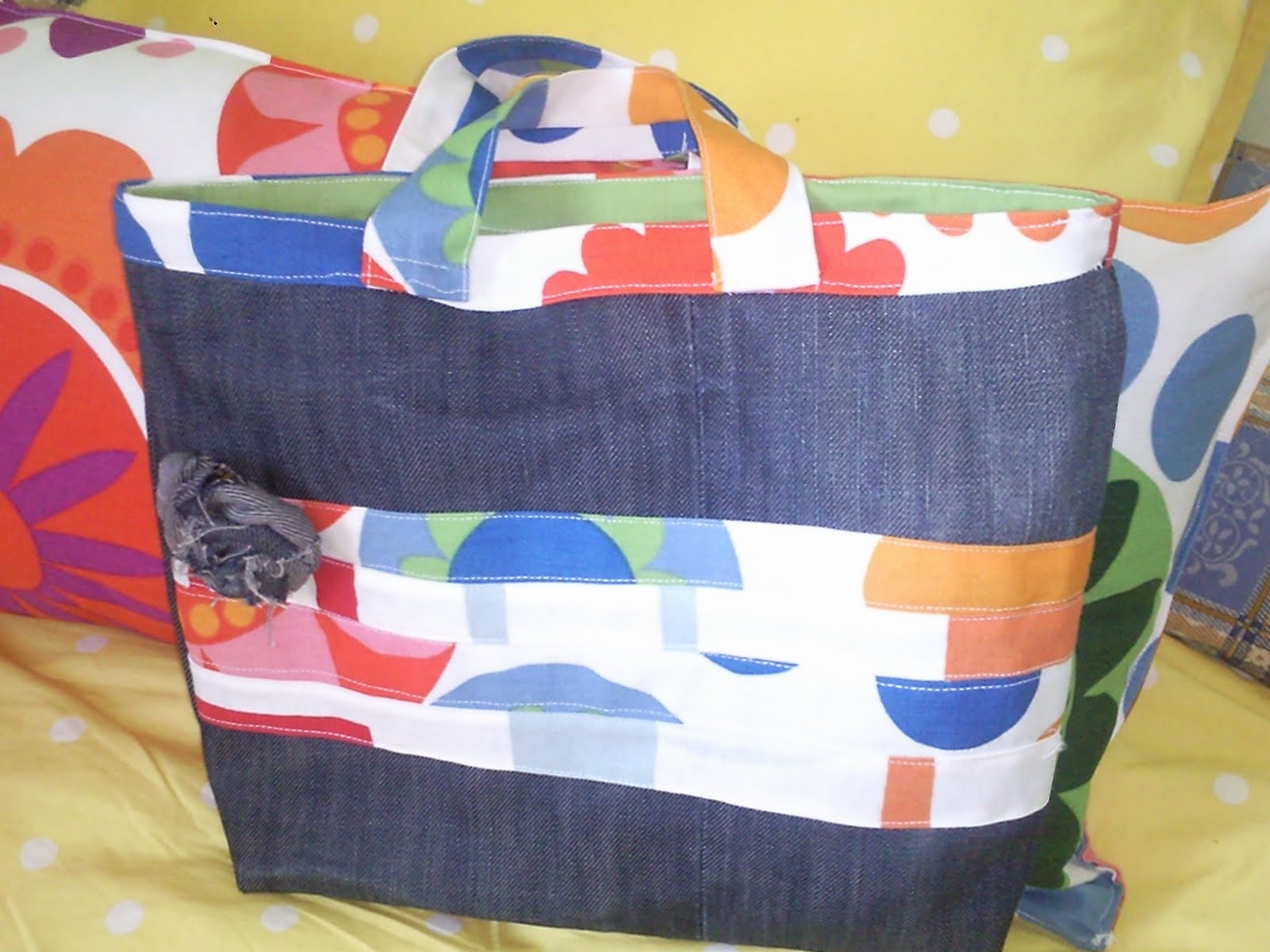 He confeccionado un cojín mullidito, muy cómodo y blandito. También he hecho un bolso con tela de unos viejos vaqueros y tela estampada...con una flor de tela vaquera y unos bolsillitos para colgar en una barra en la pared...donde guardar cositas!! Ya me diréis que os parece.....Salu2!!
