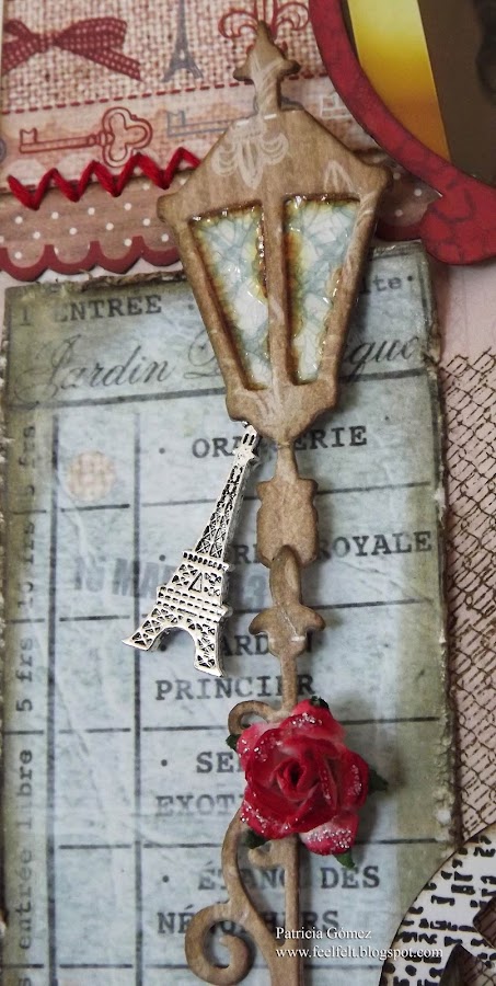 El cristal de la farola lleva Crackle Accents, simulando que estuviera roto y oxidado (tinta Distress Walnut)