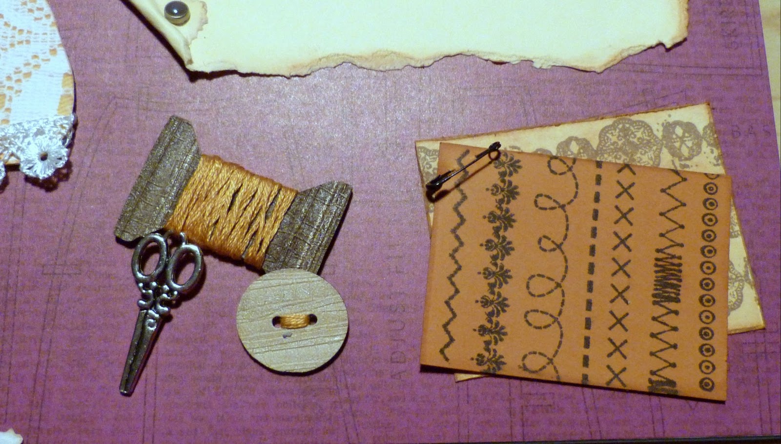 El papel inferior usado del cual no recuerdo el nombre (para variar) es perfecto para el tema ya que los dibujos son de patrones de costura.