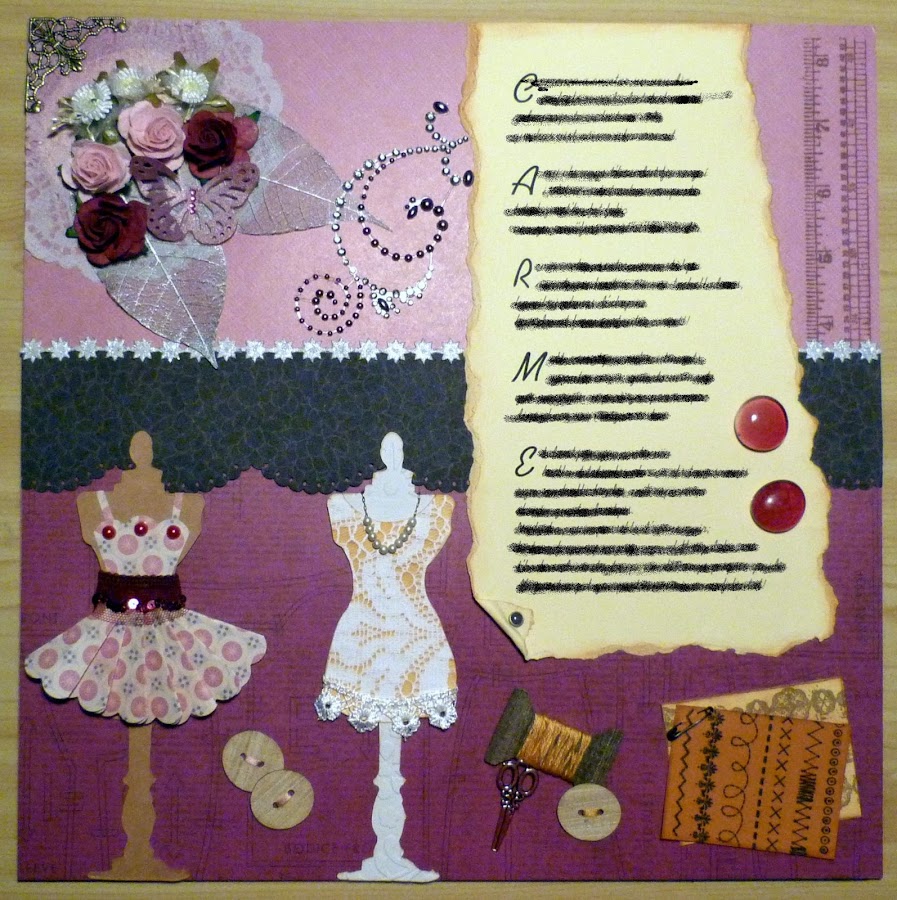 He usado el precioso troquel de Tim Holtz, Sewing Room, esos maniquís me encantan y puedes jugar a hacer vestiditos como cuando era pequeña.