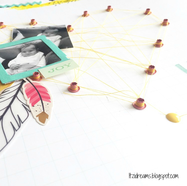 Este es el Trampantojo: He usado los Eyelets para hacer una estructura geométrica en forma de corazón, y con un hilo darle ese aire a un atrapa sueños.