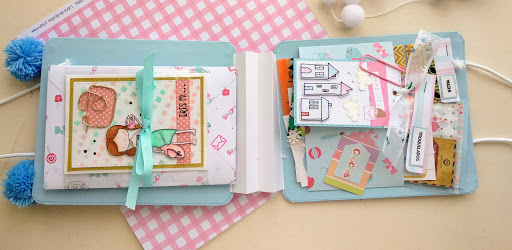 Al otro lado otro bosillo lleno de más chuches scrapperas y un tag (otro de los requisitos) con cinco cosas sobre mí: color, estilo scrap, herramienta, mañoscrapper y proyecto favorito.