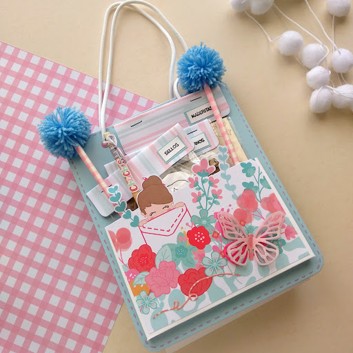 Pensé en hacer una Loaded Bag ( yo la llamo Tote Bag Snail Mail), para ello utilicé la colección Chuches de 5centimetros.shop y cartulina azul claro para forrar las dos partes que componen este correo bonito.