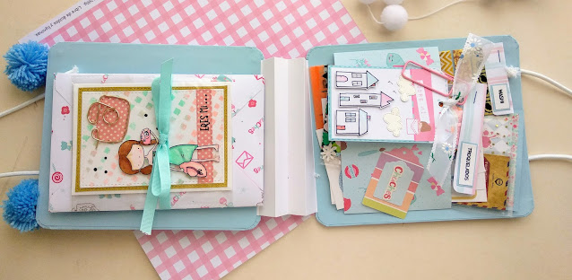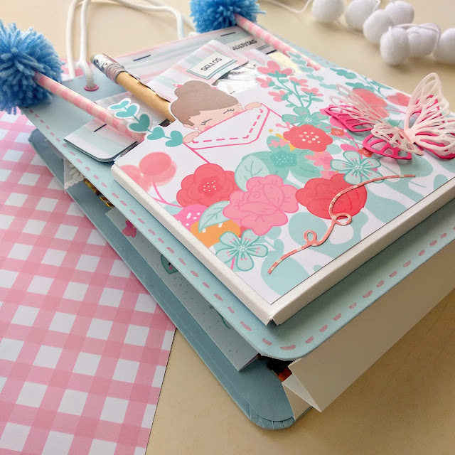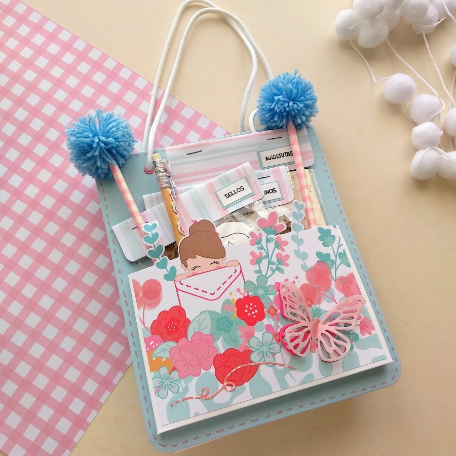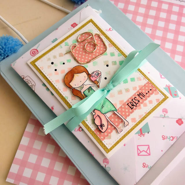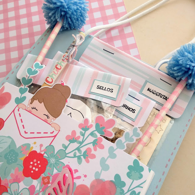 Pensé en hacer una Loaded Bag ( yo la llamo Tote Bag Snail Mail), para ello utilicé la colección Chuches de 5centimetros.shop y cartulina azul claro para forrar las dos partes que componen este correo bonito.