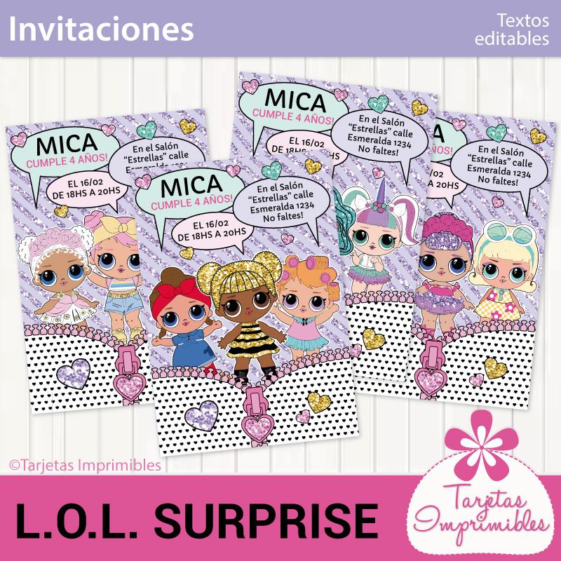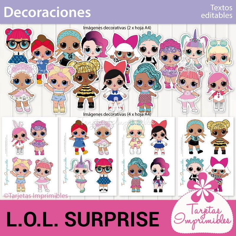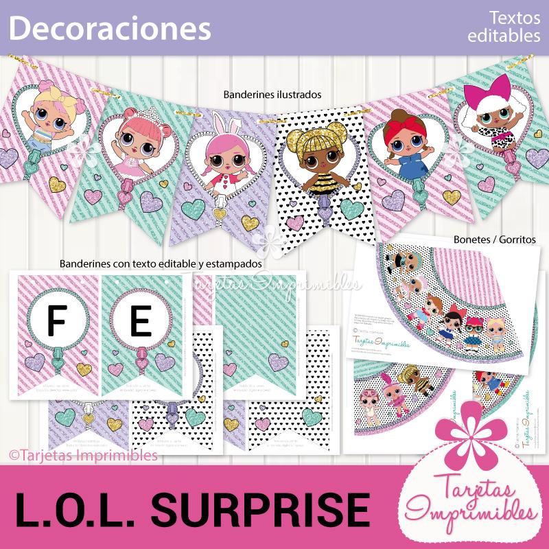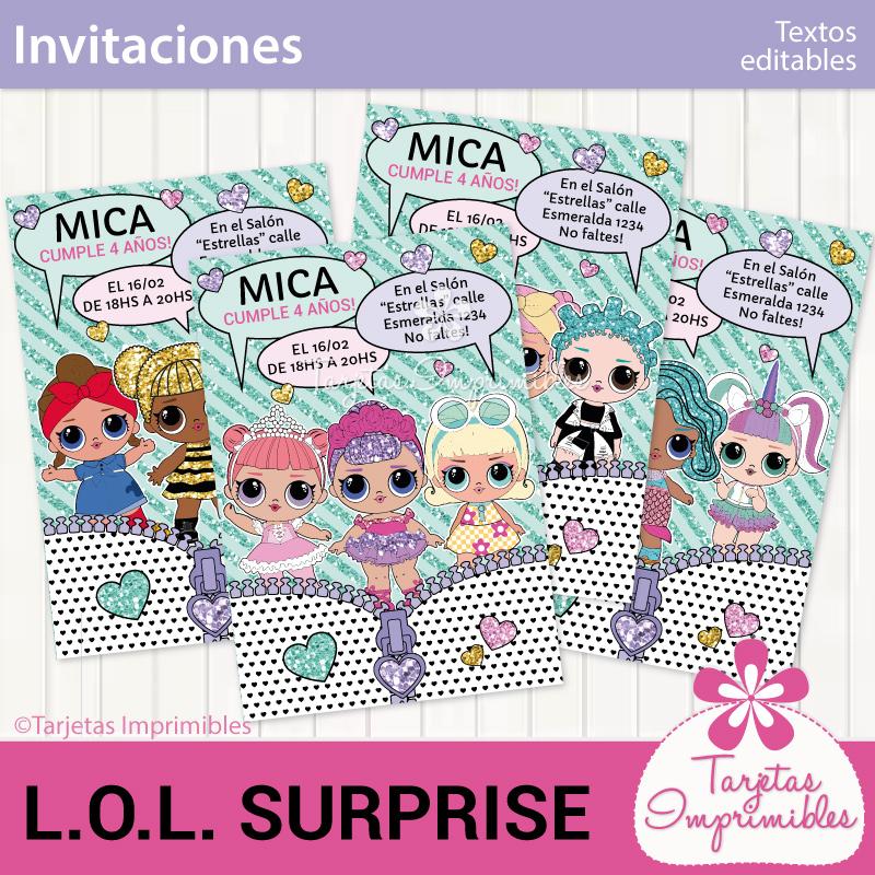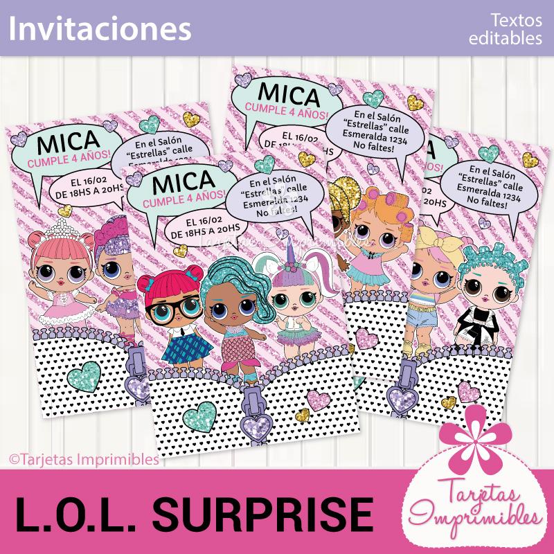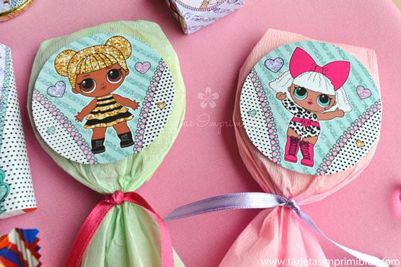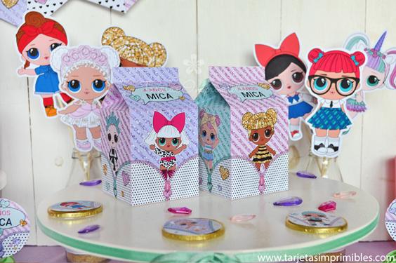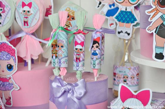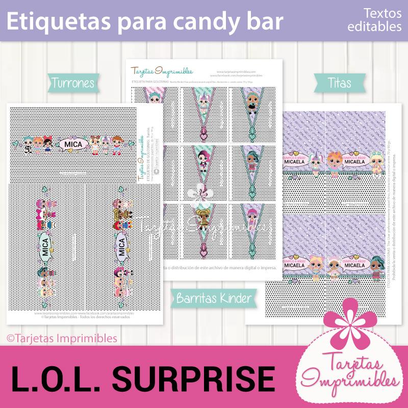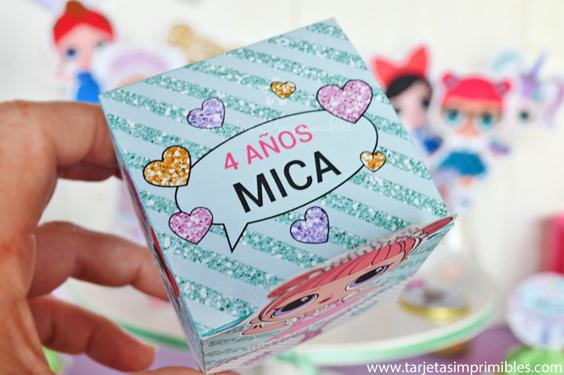 Como siempre vas a encontrar en Mi tienda online el Kit de decoraciones Lol Surprise, el Kit de etiquetas para candy bar, 3 modelos de invitaciones, wrappers para cupcakes y cajitas para regalar a los invitados.