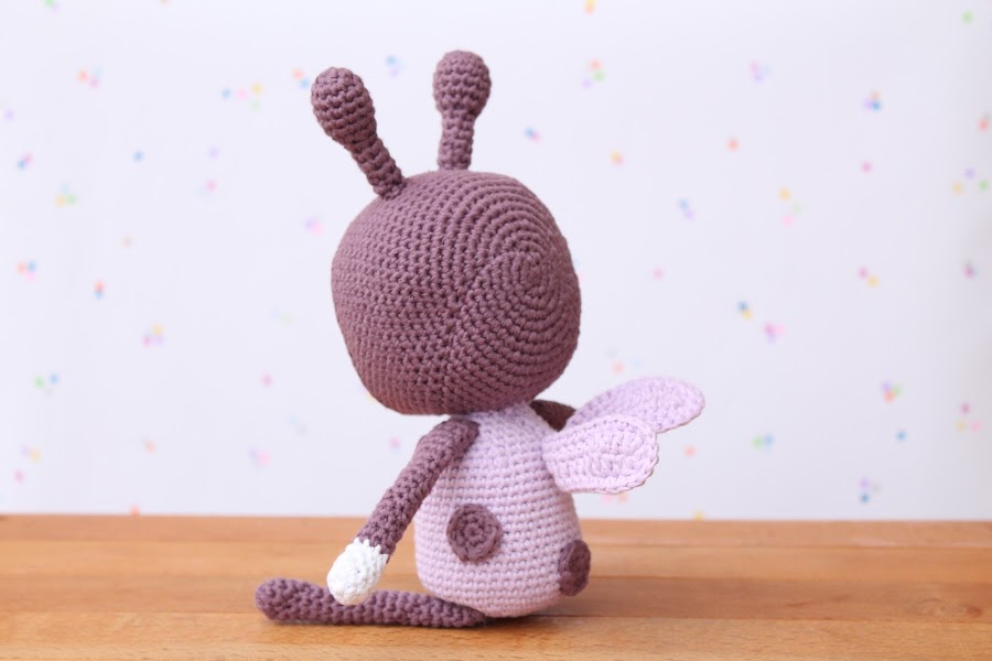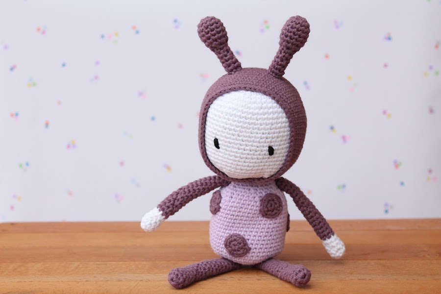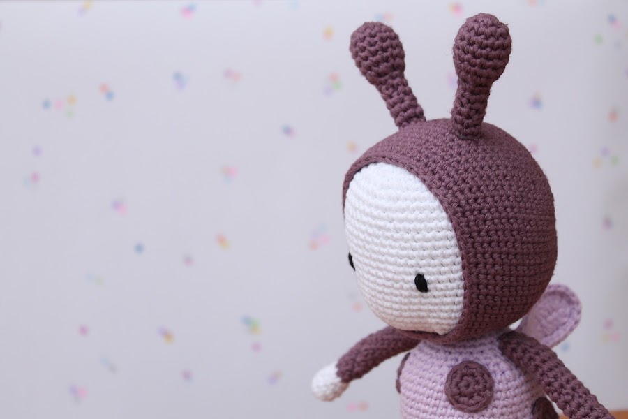 Por un lado tenía claro que quería hacerle un conjunto de bebé, pero también me apetecía hacerle algún muñeco de amigurumi y casi por casualidad descubrí el patrón Lola the Ladybird de Alison North que me pareció el regalo perfecto.