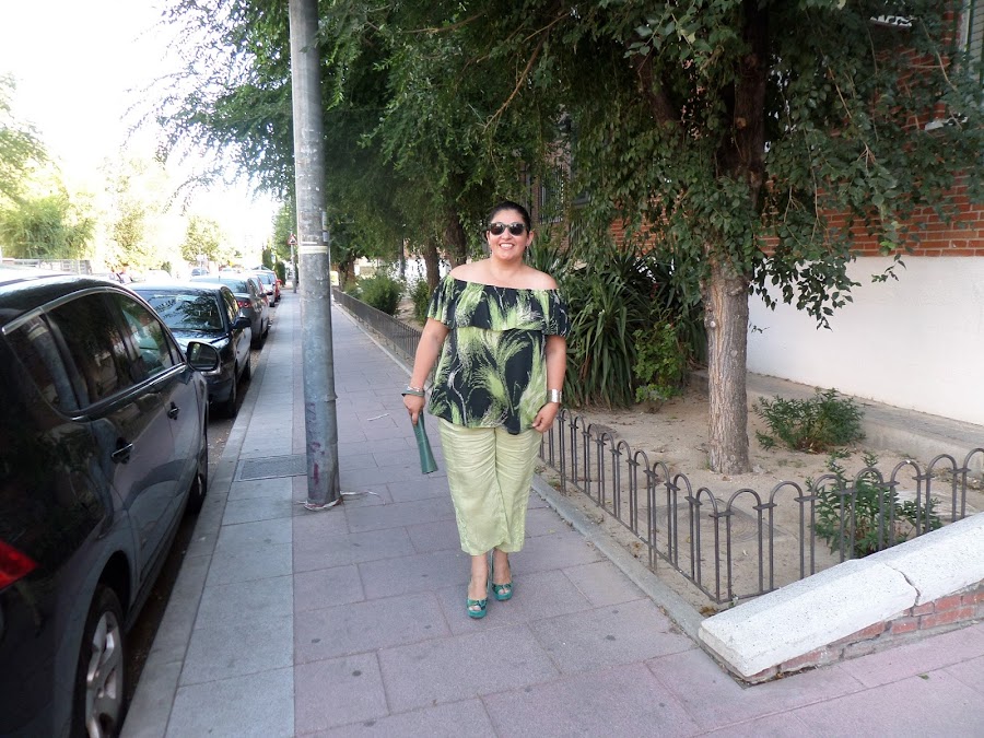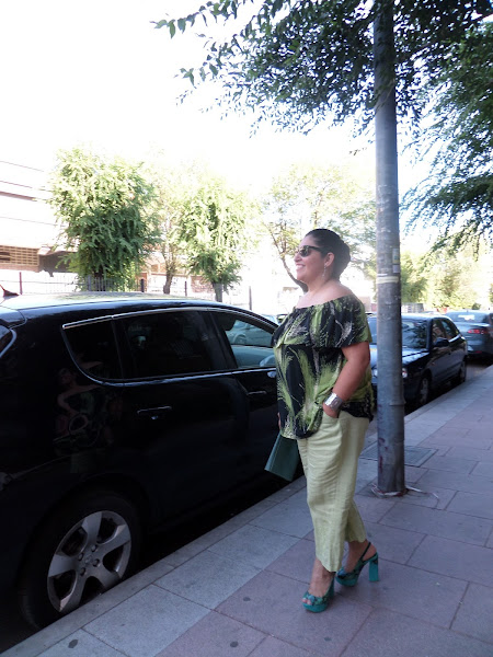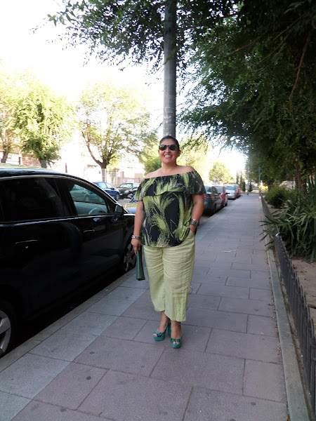 Aquí os dejo mi propuesta de look, un poco arriesgada, blusa sin hombros con volante con pantálon capri y peep toes con tacon cuadraro. Un look con mix de estampados que espero que os guste y os dé ideas de combinación y de posibles DIY.
