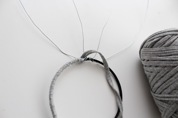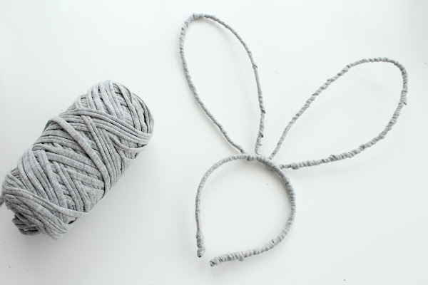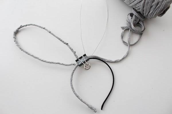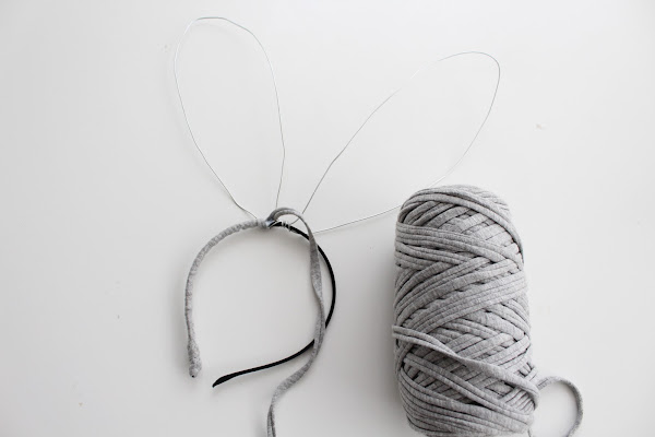 ¿Qué hacer cuando tienes una tarde de lluvia por delante, una diadema, alambre y algo de trapillo? Pues unas orejas de conejo para Pascua :-).