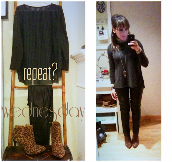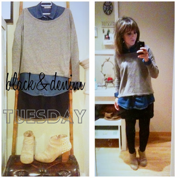 En principio quise aprovechar la percha del lunes anterior (que no fui a trabajar porque estaba malita) pero finalmente me puse un cuello cisne en vez de la camisa y me cambié de botas.