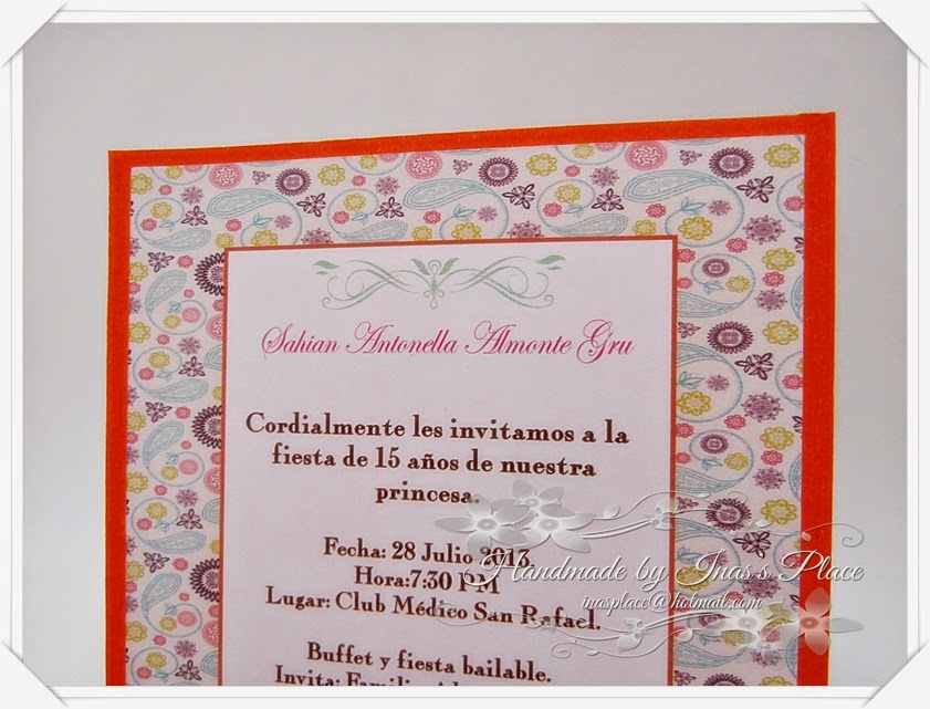 Para esta ocasión también escogí el naranja y lo combiné con este color resultando un contraste entre ellos.Tuve libertad de escoger los tonos y el motivo del papel decorado me pareció apropiado a la fiesta.