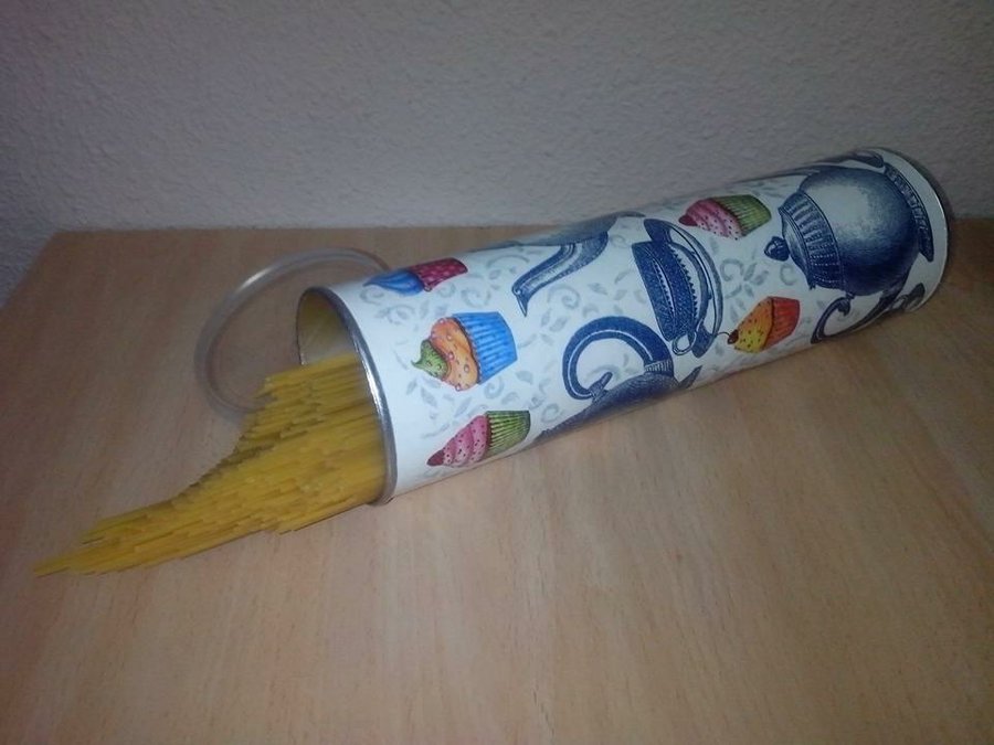 15 Luz Fernández Sánchez- 37 votos. Latas de patatas decoradas con las técnicas del decoupage y estarcido.