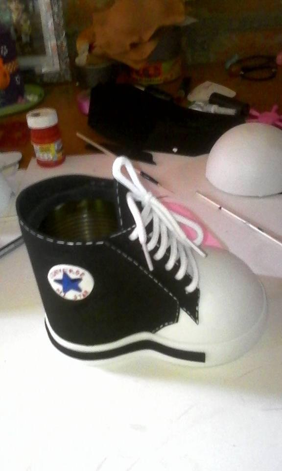 1 Azucena Ríos- 220 votos. Un bote para los lápices decorado en forma de zapatilla con goma eva.