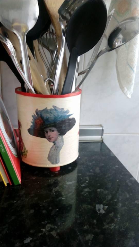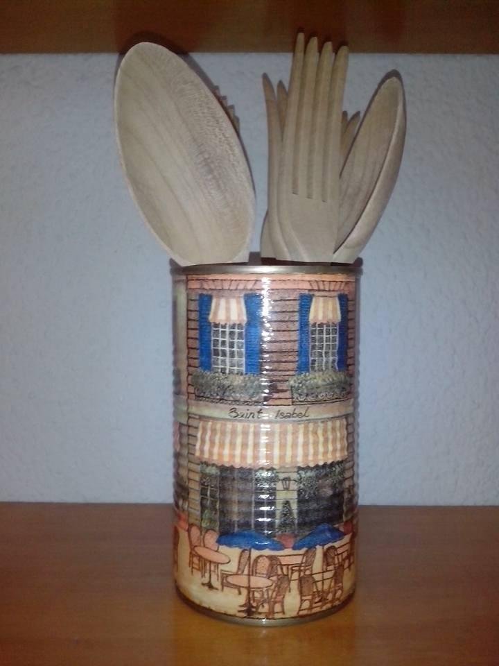 18 Luz Férnandez Sánchez- 32 votos. Un nuevo ejemplo de las posibilidades del decoupage para decorar latas.