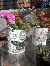 6 Liliana Cisneros- 69 votos. Latas decoradas con la técnica del decoupage y usadas como macetas.