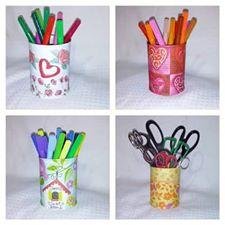 14 Laura Daniela- 39 votos. Latas para organizar materiales decoradas con decoupage.