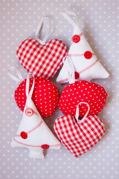Of course! I was sewing so I made these in red fabrics too and as it was easy, I have prepared this tutorial for you can your own ornaments like me, with pictures step by step, it is so easy that you can make it by hand with fabric or felt.