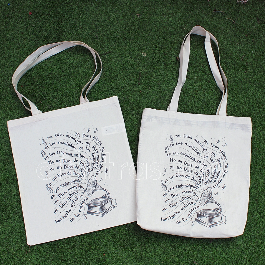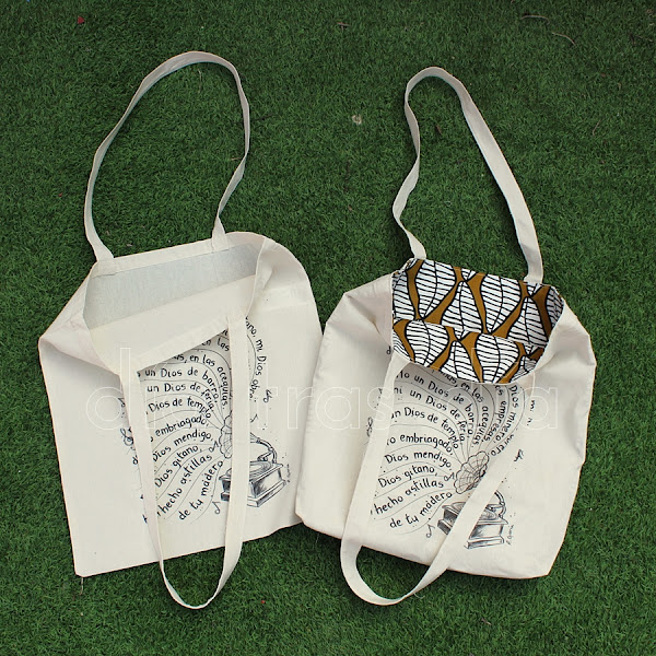 Pero después de decidir las camisetas, alguna dijo que también quería un bolso como el que hice para Pilar, para llevar en él el cuaderno con los cantos a la hora de ir a los ensayos. Así que salieron algunas más sumándose a la iniciativa. Y como con las camisetas, aquí también ha habido dos opciones: bolso forrado o sin forrar: