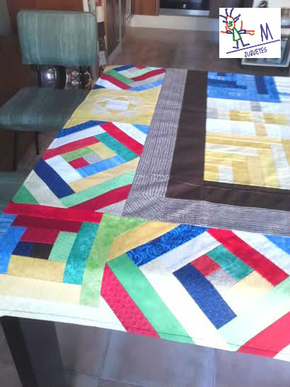 Como podéis ver el tapete reproduce un parchis, lo cual aporta un colorido espectacular, destacado aún más por el marco oscuro que lo rodea. En las faldas ha continuado jugando con los colores y las formas.