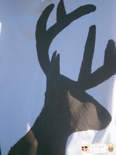 Una vez bien enganchada, con ayuda del bote de pintura que tiene una boquilla ideal, pinté todo el contorno del animal. Una vez marcado, retiramos la plantilla y con ayuda de un pincel, rellenamos todo el dibujo.