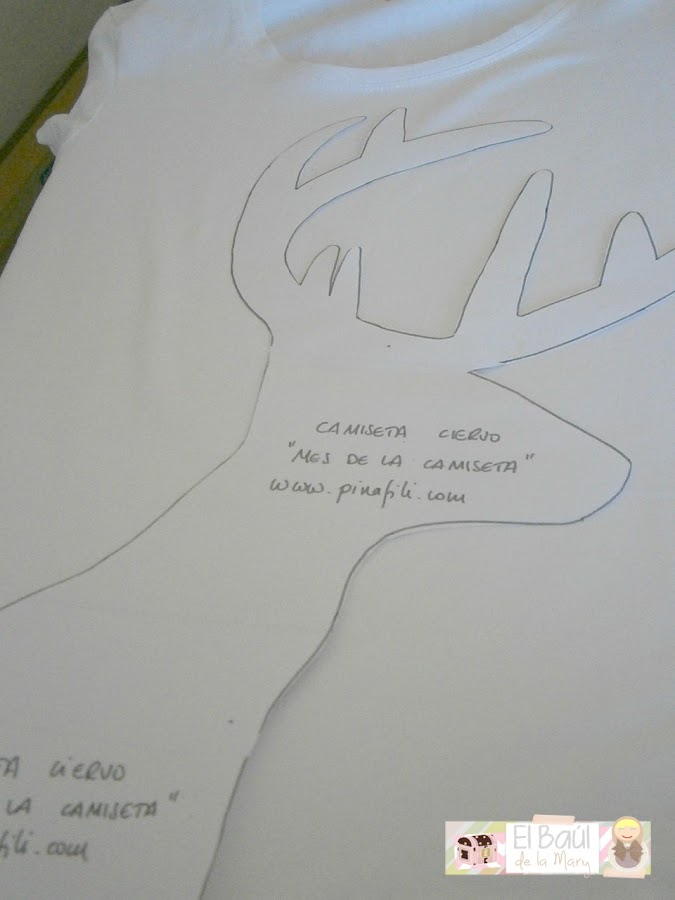 Primero monté la imagen del ciervo sobre la camiseta, y la enganché con alfileres para que no se moviese