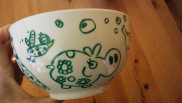 Estos detallitos son para dos peques del curro, los nenes de mi amigueta Marian, uno es un renacuajillo que está con las papillas así que el tazón le irá superbien a su mami y el otro ya es más grandecillo y se puede tomar su colacao solito o puede poner sus lápices de colores en la taza