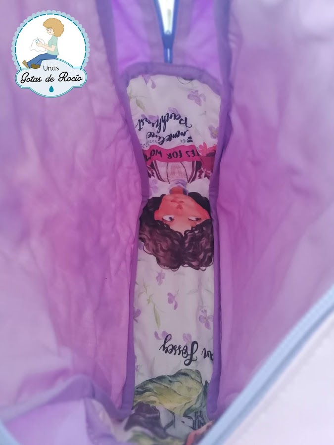 El interior es muy amplio y el remate del bies, además de conseguir que tela exterior y forro vayan juntas, le da un acabado muy juvenil.