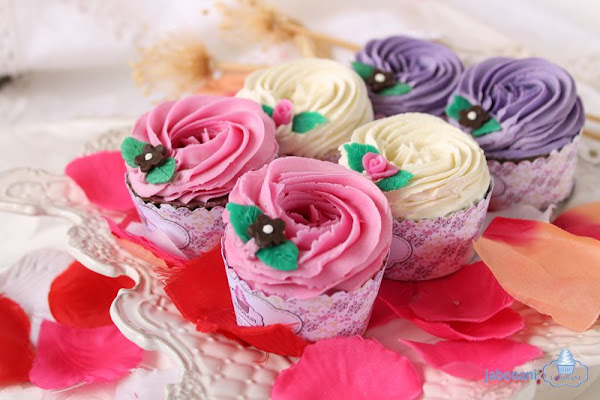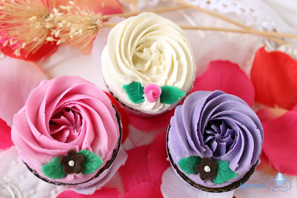 Cupcakes en forma de flor color lila;