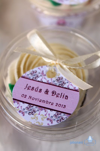 Y por fín llega el día en que os presento los jabones cupcakes que elaboramos como detalles de la boda de Delia y Jesús, yo sé que cierta personita estaba deseando que las publicase ;) y es que Délia es toda dulzura, tal es así que que se ha embarcado en la misma locura que nosotros, en emprender por cuenta propia, junto a su hermana son las creadoras de "M&D sueños de azúcar" donde se encargan de decorar mesas dulces para eventos, elaborando todo tipo de delicias, cupcakes, galletas decoradas, con la ventaja que las de ellas siiiii se comen jejejeje y tienen una pinta ummmm os recomiendo que paseis por su Facebook pinchando aqui y le echéis un vistazo seguro que no podeis resistir la tentación.