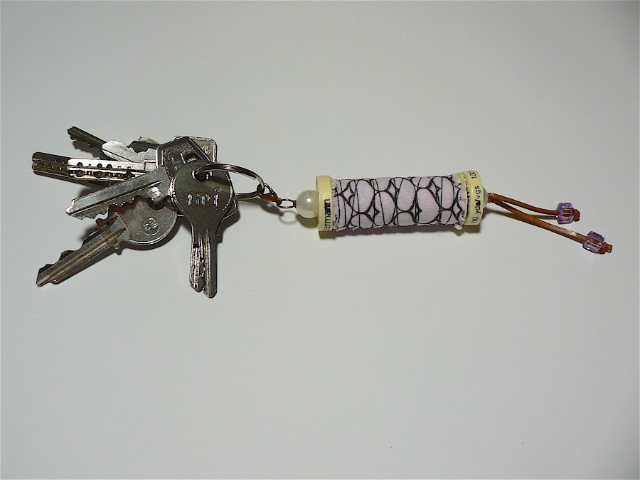Y aquí mis llaves. Primero me había hecho un llavero con dos carretes, pero era demasiado aparatoso, no os lo recomiendo. Un sólo carrete es mucho más cómodo.