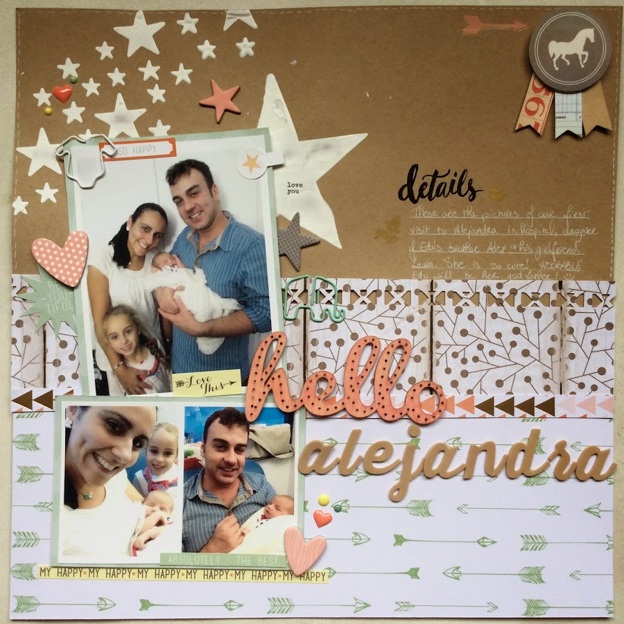 Hoy el layout se trata de mi nueva sobrinita Alejandra! ¡En las fotos se nos ve.. y casi se ve la baba cayendo jajajajaja! ¡La niña es preciosaaaaaa y se merecía un Layout todo suyo! Estoy utilizando lo ultimísimo que me queda de los papeles de Teresa Collins Nine and Co.