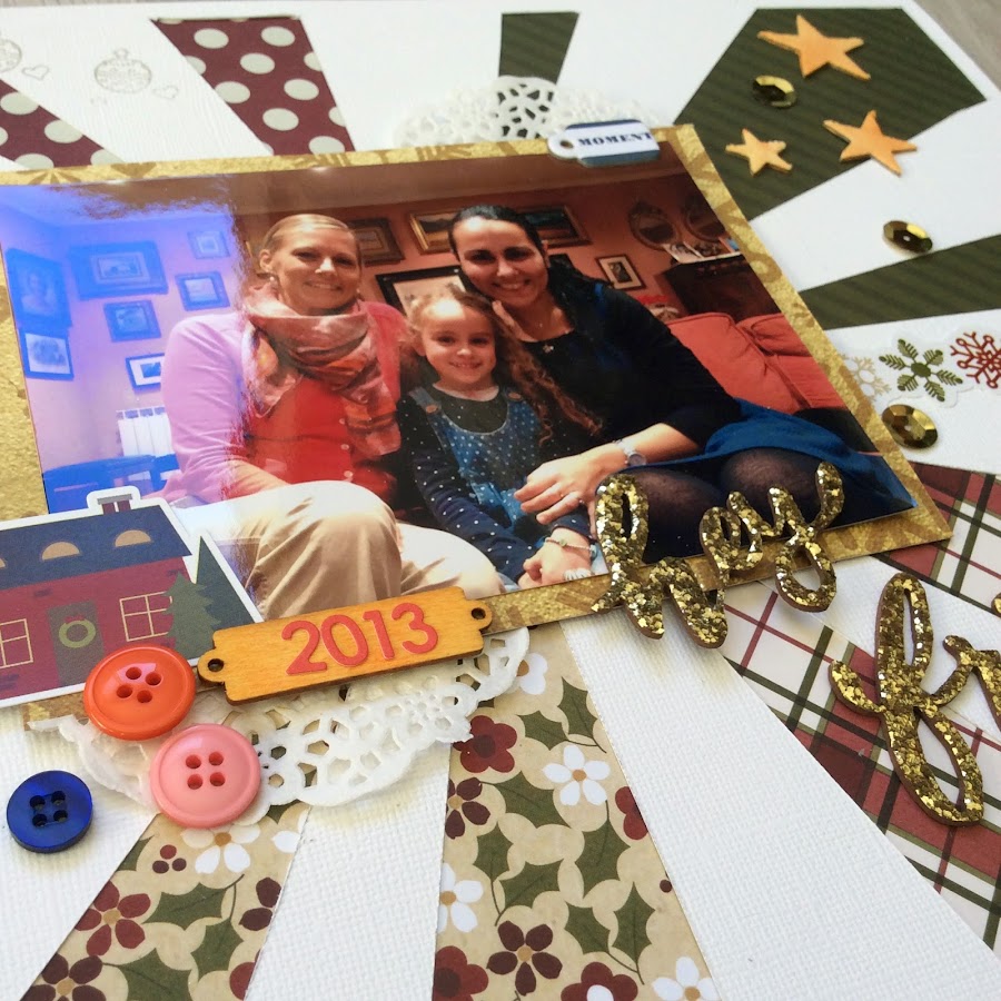 Lo demás esta chupao. A jugar con papeles bonitos, en mi caso la colección de Simple Stories , Cozy Christmas, unos adornitos y listo! ¡En la tienda Cuquicosas podeis encontrar todo lo que necesitáis para crear vuestros layouts navideños! ¡¡Tiene papeles, adornos, purpurina y muchas mas cosas preciosas!!