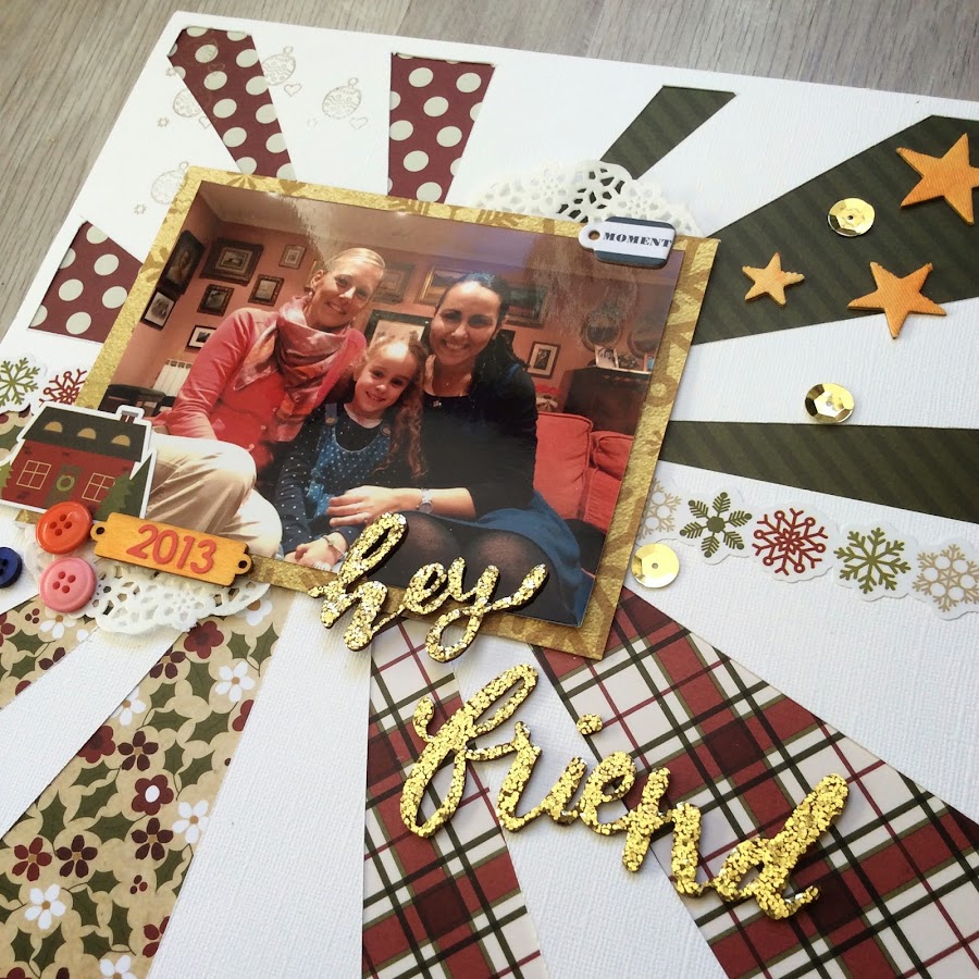 Segundo es la foto porque utilizo una foto de nosotras (yo con mi hija) con una querida amiga que tristemente solo vemos una vez al año, a veces menos porque vive muuuuuy lejos! Pero siempre que esta por Madrid la reunión no falta nunca! ¡Esta foto es del año pasado y la tenía guardada para escrapear desde hace tiempo. ¡Por fin ha visto la luz!!