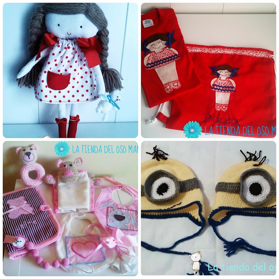 Tanto en su blog, como en su página de Facebook, podréis encontrar estos y muchos otros trabajos. Gorros, muñecos, peluches, sonajeros, baberos, camisetas, taleguitas.... Y muchísimas cosas más. Visita 100 % recomendada!!!