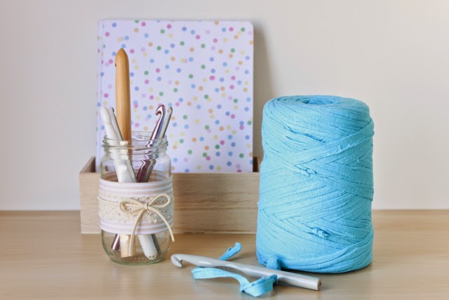 Así que hazte con el trapillo y una aguja del 10, esa es que yo he gastado y ¡¡a trapear!!Con la de cosas bonitas que se pueden hacer, cestas, bolsos, alfombras... y además tienes la ventaja de que si no te sale, pegas tironcito y se deshace.
