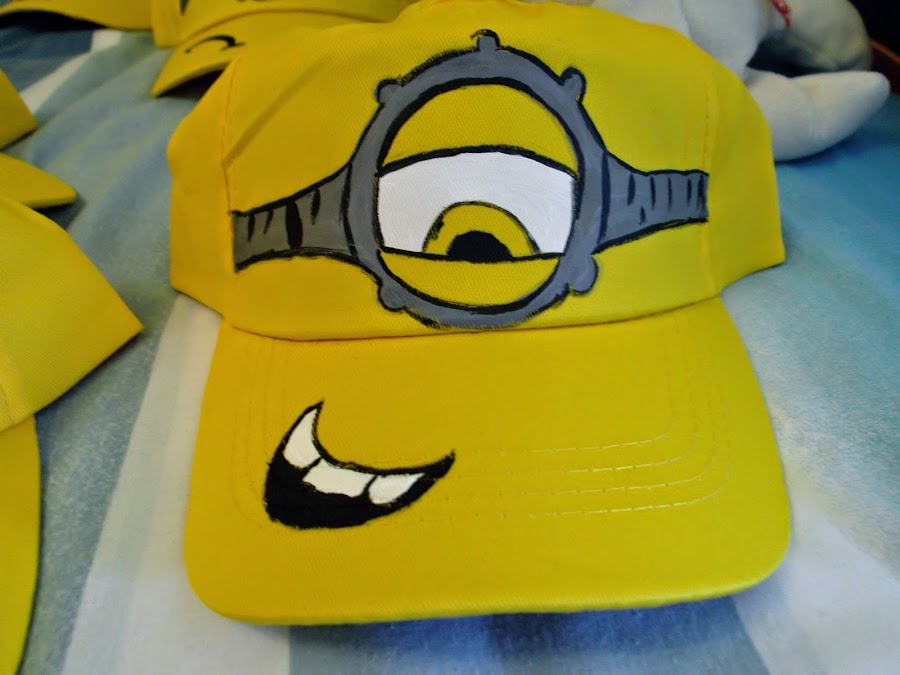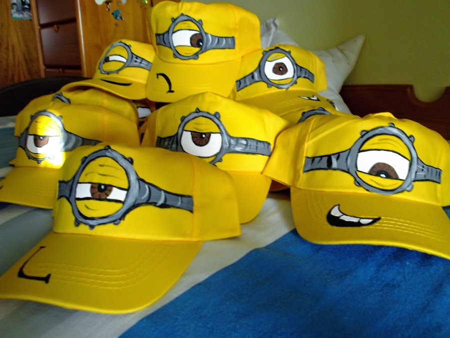 y claro que mejor regalo que pintarles, sus personajes preferidos los "minions! en una gorra.