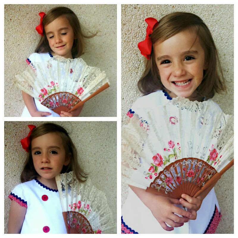 El look andaluz de mis nenas estaría clarísimo..vestido tonos blanco y rojo que nunca falla, perfecta combinación de colores.Y esta fiesta pide complementos que representen a Andalucía. En este caso yo elegiría una rosa roja en el pelo para Alba y para Triana (muy acertado su nombre ) un abanico pintado a mano muy especial para mi, quien haya venido a mi boda sabrá por qué.