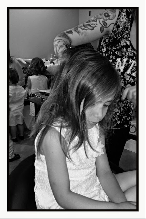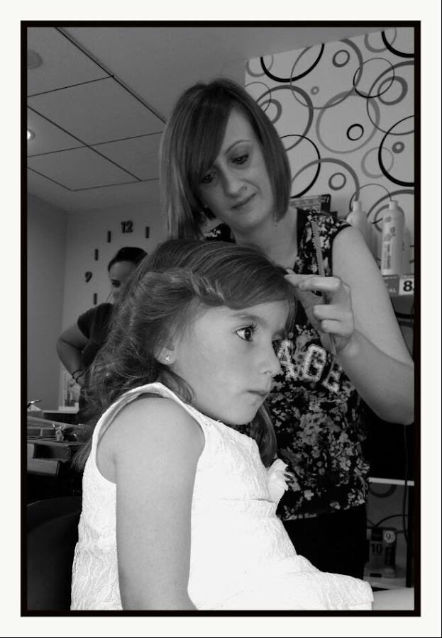 - ¡es que no puedes ser mas guap@!, pues es cierto,para ella lo es.Yo soy del club de:¡Pero que guapa eres leches!,y sin embargo,todavía las pusieron más al limite de la belleza.De esto se ha encargado Hadas estilistas,que con su arte han hecho que se nos cayera la baba al verlos. Miriam, la peluquera, en un momento se lo veía hecho.Trataba a los peques con mucha delicadeza y¡ no se quejaron de tirones!,con lo que sufro cada mañana al peinarlas....además en todo momento con una sonrisa (me encantó) y Noelia, la maquilladora,que me transmitió mucha dulzura y humanidad cuando al terminar su trabajo cogía en brazos a cada peque y le decía lo guapísimo que había quedado frente a un espejo.Todos ellos despendían olor a felicidad,quedaron encantados.He de destacar que ambas tenían a todos los niños como embrujados,todos quietecitos y sin rechistar....¡así da gusto!..