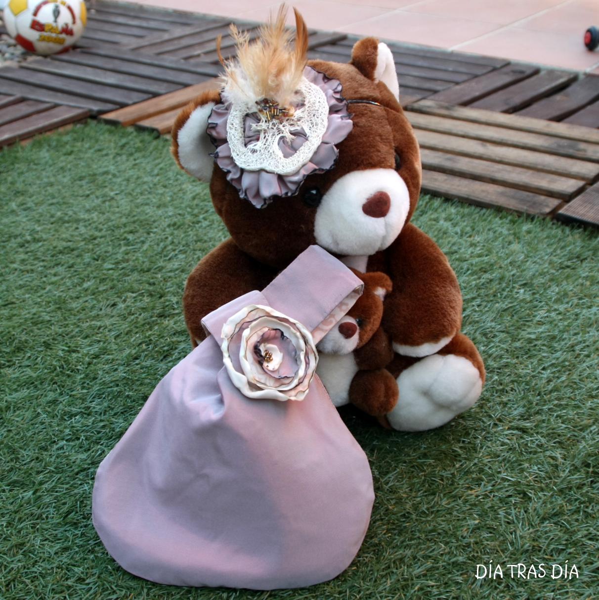 En primer lugar, os enseño el bolso, que me pidió que fuese reversible y siguiendo el mismo modelo que ya os he enseñado por aquí en otras dos ocasiones (aquí y aquí). Este tipo de bolso me parece que es ideal para este tipo de celebraciones, ya que te permite disponer de las dos manos libres en el momento de la copa inicial que suele servirse, donde, por propia experiencia, no sabe una nunca qué hacer con el bolso, la copa, la servilleta e intentar captar un canapé...