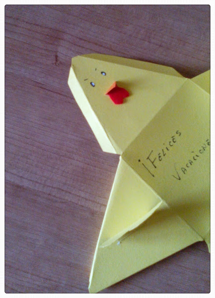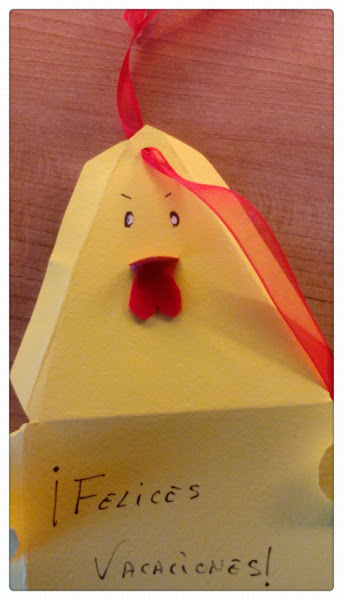 Como la semana que viene tenemos las vacaciones de Pascua, les he preparado este pollito y dentro he puesto unas chocolatinas.