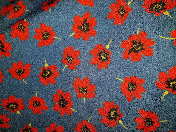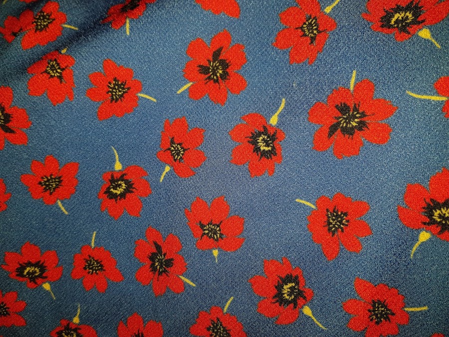 El quinto tejido es un punto muy fino elastico , me encanta esta tela tiene un azul muy bonito , en la foto no se aprecia bien , con una amapolas en color rojo preciosas , con esta tela me quiero hacer una blusa con escote de pico , bueno todavia no se muy bien como sera el patron.