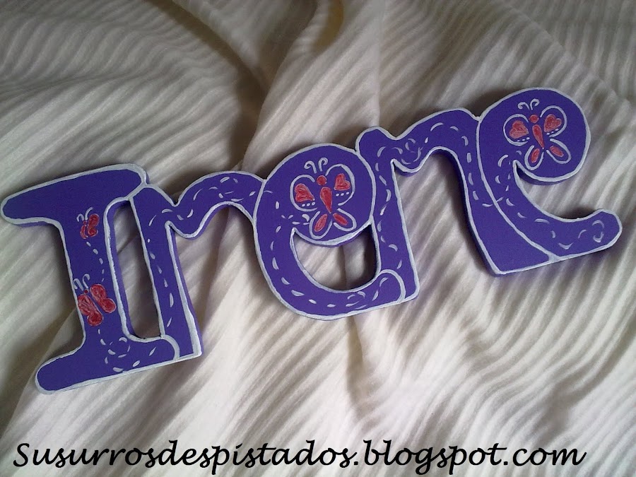 Un cartelito con su nombre, que yo pensé que era para adorno en su habitación pero al que la dueña le dio como destino su puerta del dormitorio, ¡¡¡ ey !!! para que nadie se confunda....