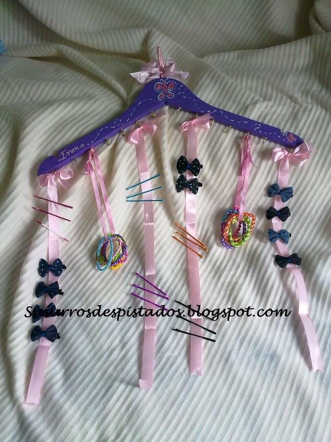 Una perchita para que tenga ordenados todos los prendedores y las gomitas del pelo. Aquí la tenéis antes...